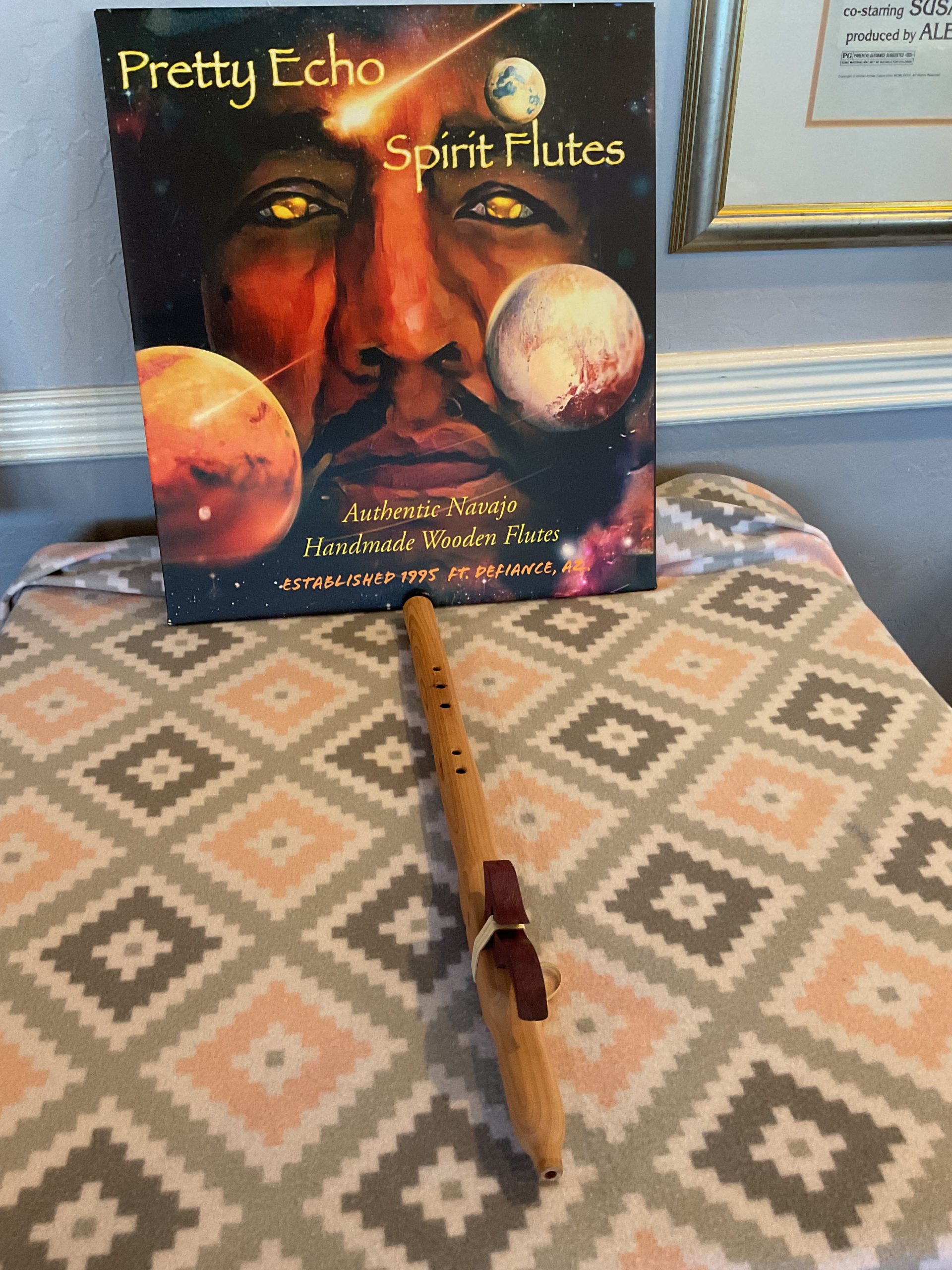 5 Hole Pretty Echo Spirit Flute Traditional Style resonating a Native American earthly vibration. Aromatic cedar measuring 24”.