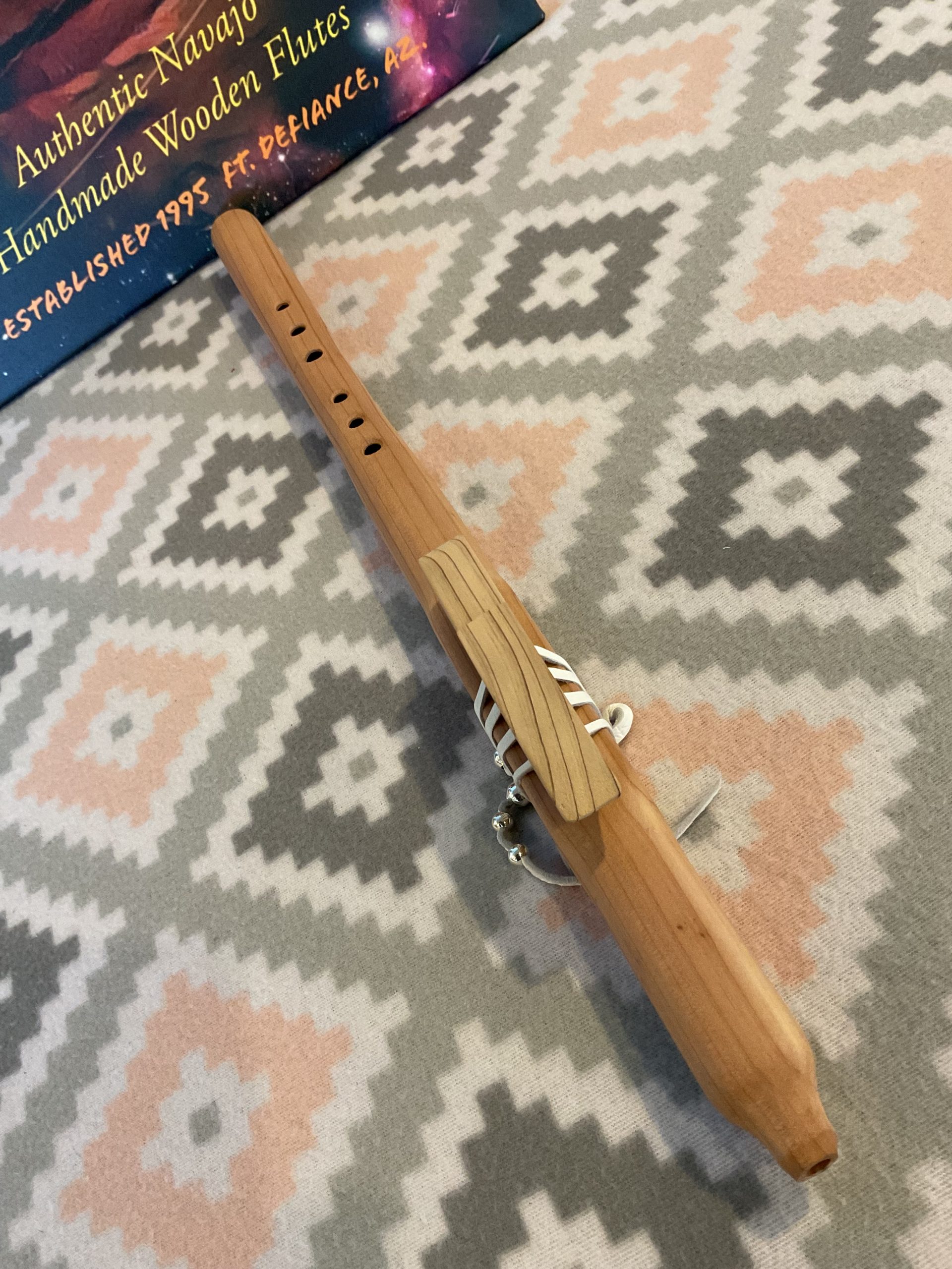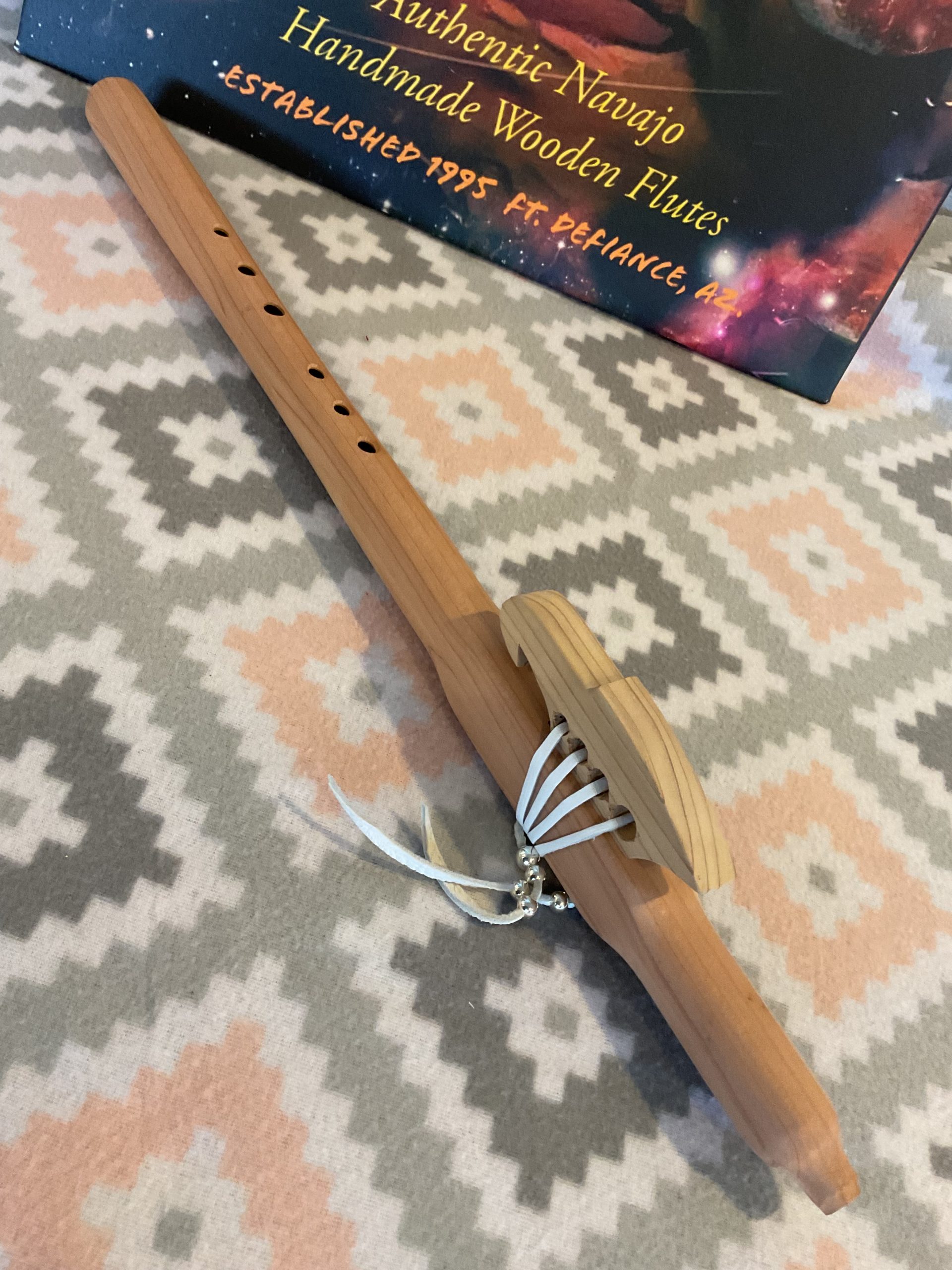 - reed piece is tied down uniquely with soft deerskin lace adorned with silver plated beads.